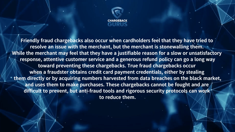 Chargebacks also frequently occur when cardholders feel that they have tried to resolve an issue with the merchant, but the merchant is stonewalling them. While the merchant may feel that they have a justifiable reason for a slow or unsatisfactory response, attentive customer service and a generous refund policy can go a long way toward preventing these chargebacks.